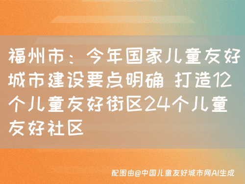 市里将面向全社会广泛征集具有福州特色元素的儿童友好城市品牌传播形象,如宣传LOGO、海报、数字虚拟形象等,让倡导儿童友好、儿童优先成为全社会共识和全民自觉。