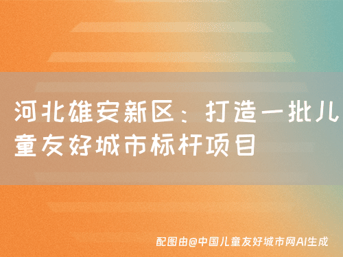 目前,通过项目化、清单化、闭环式推进,雄安新区正在努力培育一批儿童友好城市标杆项目、3个儿童友好示范区和40个儿童友好示范社区,力争到2025年前成为国家儿童友好城市试点。