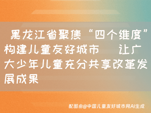 黑龙江省政府妇儿工委坚持聚焦“四个维度”,在全省范围内加力推进儿童友好城市建设工作,让广大少年儿童充分共享改革发展成果,为加快建设“幸福龙江”贡献力量。